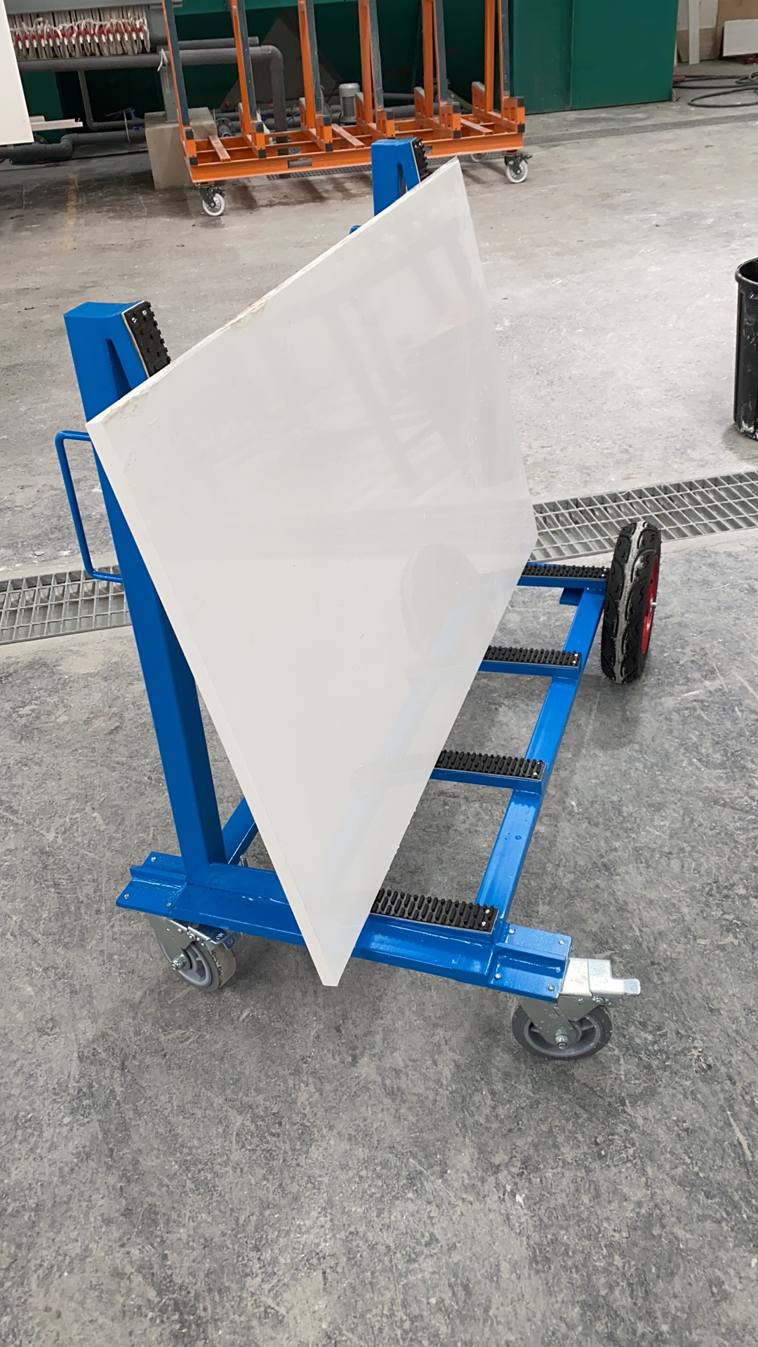 此設計用于廠區(qū)內(nèi)外的板材運輸和儲存,支架表面覆蓋一層橡膠層,保護板材免于刮傷。