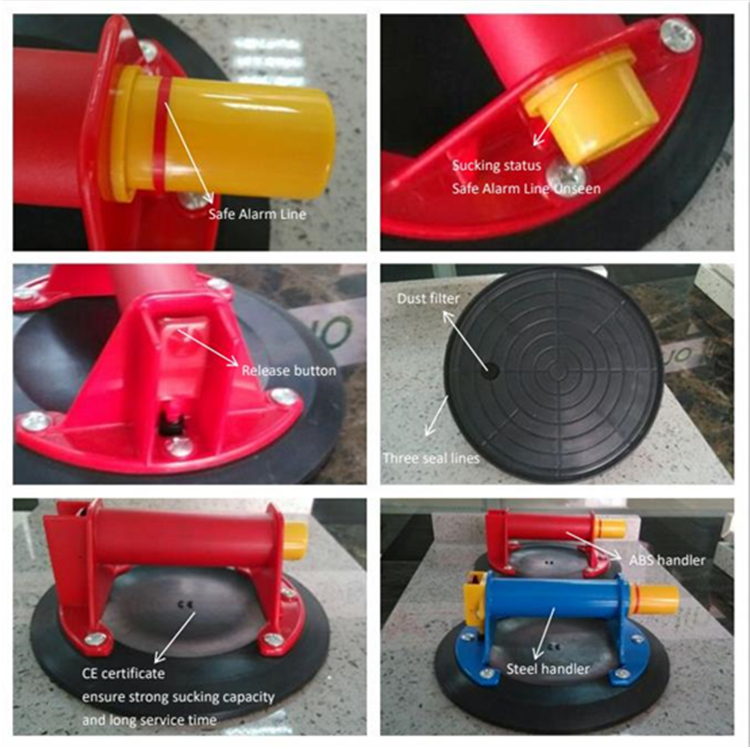 Used to adsorb non-leaky smooth surface, 4 pressing adsorption, one key to vent air, safety indication red line can find leakage at any time.