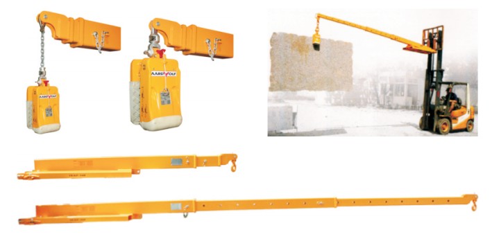 吊臂伸展的設(shè)計使其無法完全被拉出來。吊臂被牢固地安裝在叉車的叉子上,通過兩個固定在叉槽和限制鉚釘?shù)谋巢柯萁z固定,它為司機提供了多種用途。